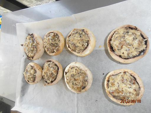 Особенности: Отношение к вегетарианству: Вегетарианское блюдо, питание по Монтиньяку. Шампиньоны почистить (не мыть!!!), подготовить шляпки , вынув сердцевену и смазав снаружи оливковым маслом. Ножки обжарить с репчатым луком на оливковом масле.Нафаршировать шляпки подготовленной смесью, залить заранее приготовленным соусом - сливки или молоко, яйцо, сыр в терку, соль, перец.Запекать 30 минут в духовке.