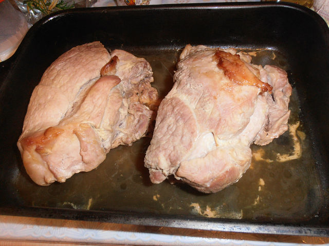 Особенности: Свинину намазать горчицей, посолить, поперчить, поставить в холодильник на 4-8 часов.Выложить в форму, плотно закрыть фольгой и запечь в духовке (1,5 часа при 160 гр).После остывания положить в холодильник и резать в холодном виде. Можно запекать в смазанной оливковым маслом фольге, учитывая, что свинина дает сок, который можно использовать для приготовления тефтелей. Ингредиенты: мясо свинины 1 кг. Автор рецепта: Olga Kholodova.