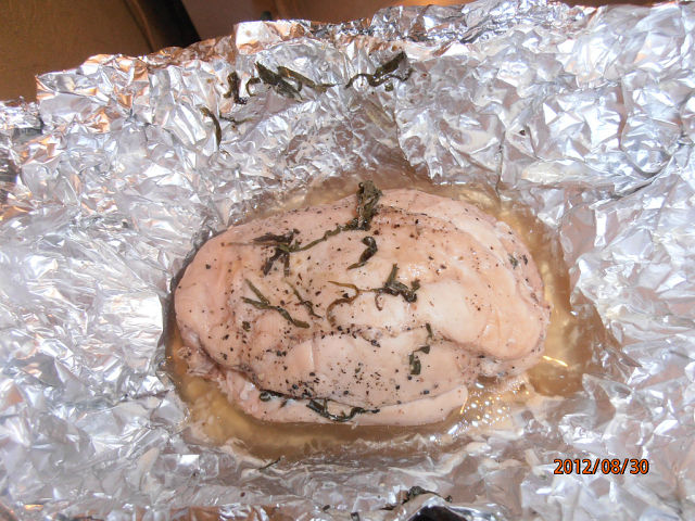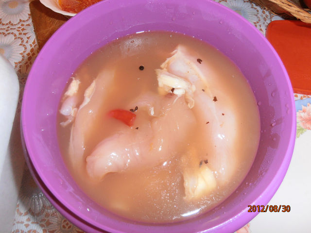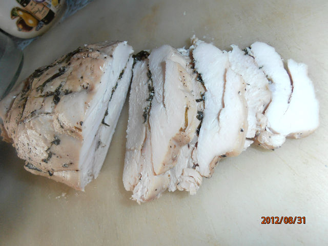 Особенности: подходит детям, годится беременным, низкокалорийно, питание по Монтиньяку. 4 куочка филе куриной грудки замариновать на 5-8 часов в маринаде Для маринада: 1 литр воды, 2 стл крупной соли, несколько горошин чёрного перца, 1 лавровый листик, 1 стл листового чёрного чая, 1 нечищенная разрезанная пополам луковица, довести до кипения, дать покипеть пару мин, охладить, и в полностью остывший маринад погрузить филе, поставить в холодильник после маринования грудки обсушить, обвалять в оливковом масле и специях, я добавила тархун и смесь перцев, плотно замотать в фольгу и запечь 30-40 мин при 180 гр, охлаждать в фольге, нарезать после охлаждения в холодильнике Ингредиенты: куриная грудка 2 шт., лук репка 1 шт., специи 1 стол.ложка. Автор рецепта: Olga Kholodova.