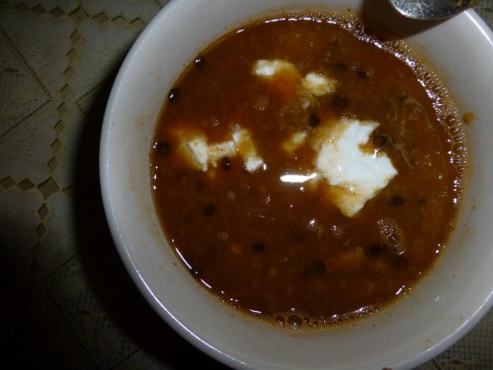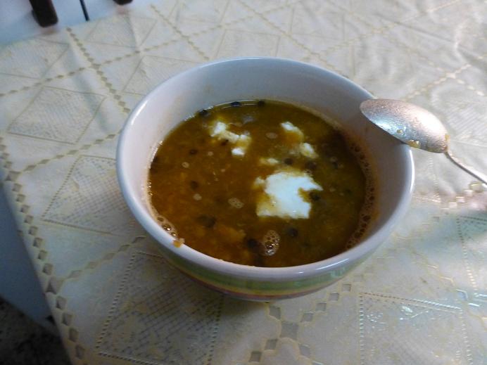 Особенности: Отношение к вегетарианству: Вегетарианское блюдо, подходит детям, годится беременным, низкокалорийно, не содержит сахара. Вскипятить 300 мл воды в кастрюле, порезать в нее картошку и всыпать черную чечевицу. Варить минут 15, а затем жобавить порезанные небольшими кубиками батат и тыкву. Добавить специи по вкусу и красную чечевицу. Вармть минут 8. Вынуть картофель, батат и тыкву и приготовить из них пюре в тарелке, посолить по вкусу, затем залить жидкостью с чечевицей из кастрюли и добавить сметану. Приятного аппетита! Вместо тыквы можно использовать долорит (такой сорт тыквы). Неплохо в тарелку добавить отваренные зерна хумуса (нута, турецкого гороха). И главное - для гурманов: можно уменьшить количество воды, чтобы варить до ее почти полного выпаривания, а затем долить... томатный сок! Ингредиенты: тыква 50 грамм, батат 50 грамм, картофель 1/2 шт., Автор рецепта: Мики Шифман.