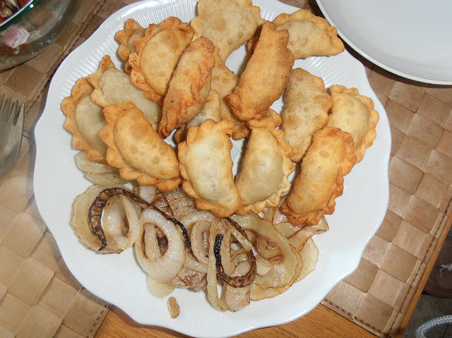 Особенности: Для теста - в горку муки разбить 1 яйцо, посолить, вмешать яйцо в муку.Влить в муку ,постоянно перемешивая ложкой, 1 стакан крутого кипятка, замесить тесто и вымешивать минут 20.Тесто "берет" еще немного муки, мешать до тех пор, пока не отлипнет от рук. Сформировать колобок, завернуть в пергамент и полотенце, оставить "отдыхать" 40 минут. В это время готовим фарш (любой), добавляем мелкую зелень, лук репку, перец , соль.Тесто ракатать тонко, вырезать кружочки стаканом,положить фарш и закрепить бортик.Пожарить с двух сторон на растительном масле. Ингредиенты: мука пшеничная 2 стакана, вода 1 стакан, яйца 1 шт., Автор рецепта: Olga Kholodova. Общие особенности приготовления