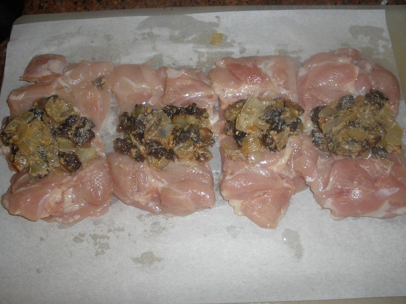 Мясные блюда Бедрышки куриные фаршированные Особенности: питание по Монтиньяку. Бедрышки куриные без косточки посолить, поперчить, нафаршировать начинкой :обжаренные в сливках шампиньоны,смешанные с жаренным луком,мелко порезанным черносливом и дроблеными грецкими орехами.Соль, перец по вкусу.Завернуть бедрышки рулетиком, закрепить зубочисткой , обвалять в сухарях с кунжутом и обжарить на оливковом (растительном) масле до готовности, переворачивая со всех сторон.