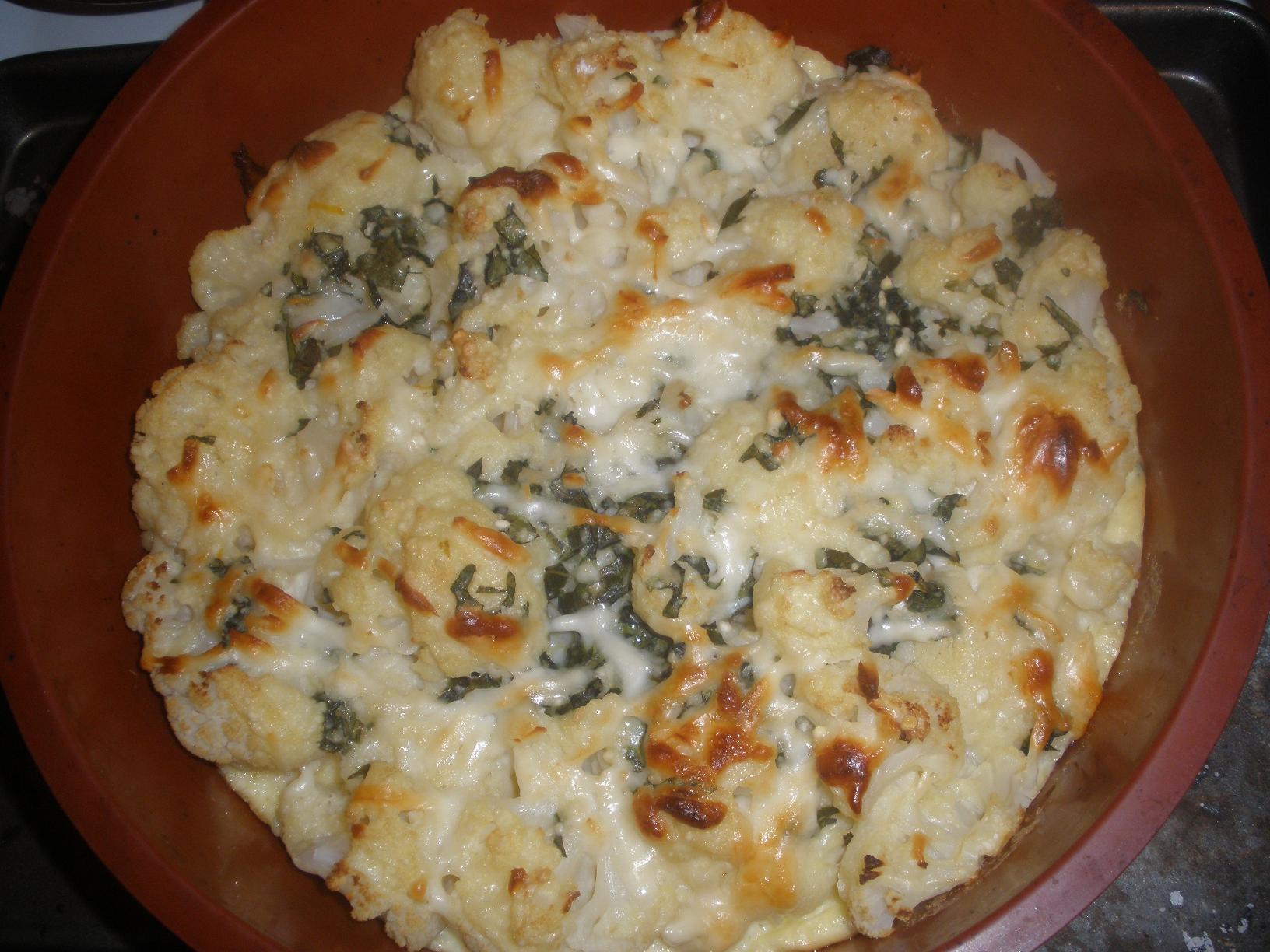 Овощные блюда Запеканка из цветной капусты Особенности: Отношение к вегетарианству: Вегетарианское блюдо, подходит детям, годится беременным, питание по Монтиньяку. Цветную капусту разобрать на соцветия,залить кипятком, довести до кипения.В форму, смазанную сливочным маслом, выдавить пару долек чеснока, уложить капусту, пересыпать базиликом (или другими пряностями),залить соусом -1 яйцо, 200гр сметаны, 2 стол. ложки муки, соль, перец.Присыпать верх тертым сыром, запекать в духовке до румяной корочки примерно 30-40 минут. Ингредиенты: цветная капуста 1 кочан, сметана 200 грамм, яйца 1 шт., Автор рецепта: Olga Kholodova. Общие особенности приготовления